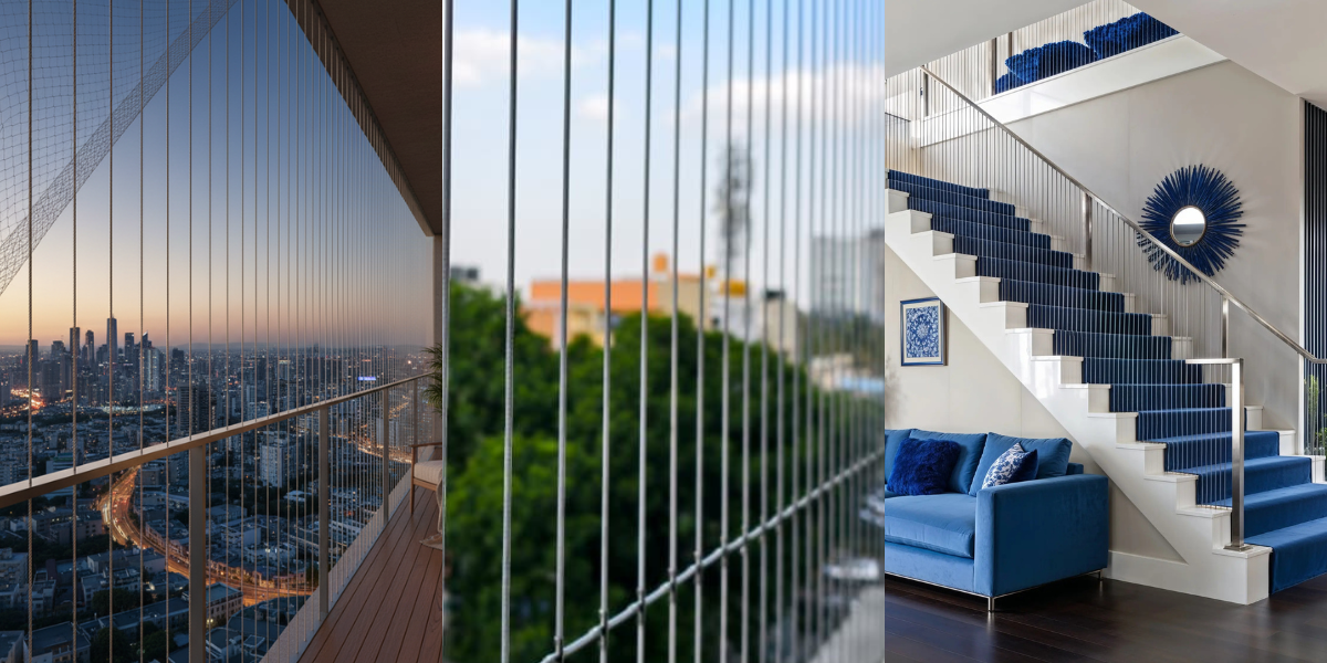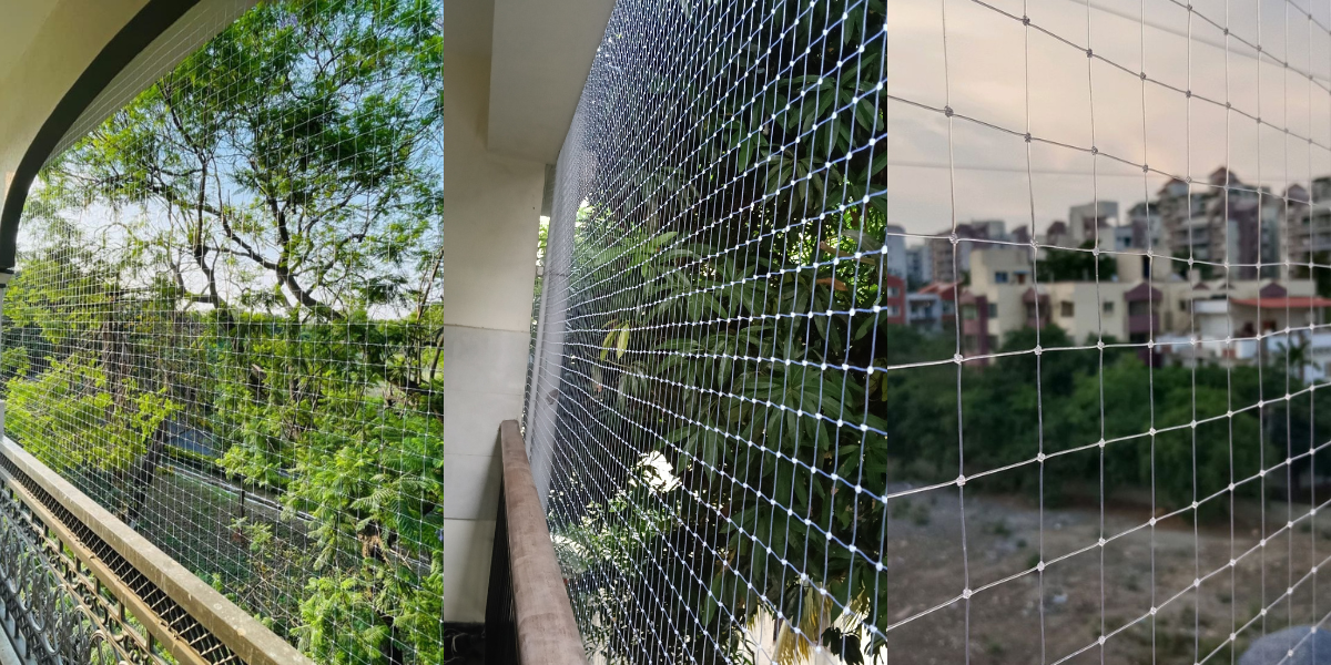 Our Invisible Grills offer a modern, elegant safety solution for balconies, windows, and open spaces—providing an unobstructed view while keeping your loved ones safe. We also specialize in Pigeon and Bird Nets, designed to prevent unwanted bird intrusion and maintain hygiene around your premises. Additionally, our Balcony Safety Nets are ideal for ensuring complete protection for children, pets, and family members from accidental falls.